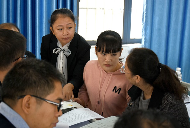 说课、模拟上课环节结束后,参加活动的老师分成三组对展示老师的教学设计、说课、模拟上课等环节进行分析讨论,然后由各小组代表、陈淑兰教研员、范永荣督导分别对展示老师的表现进行了点评,并一一提出了宝贵的意见。最后由平果第三高级中学黄琪老师对我校政治组日常的教育教学工作做介绍。