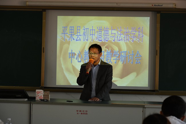 本次说课展示活动气氛融洽,既是对我校政治教师教学水平的一次检验,更是对参加活动的教师不断提高教学能力的一种激励;相信借助本次研讨会的研讨活动,平果县初中道德与法治学科教学研讨活动会得到更快地发展!