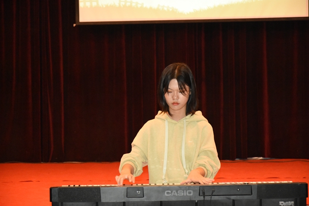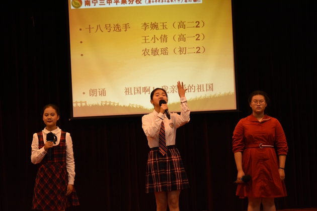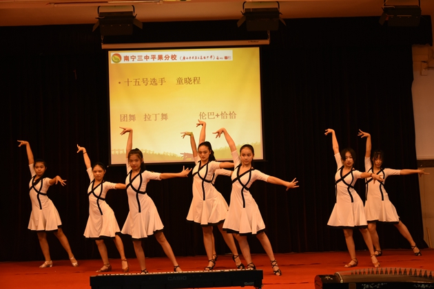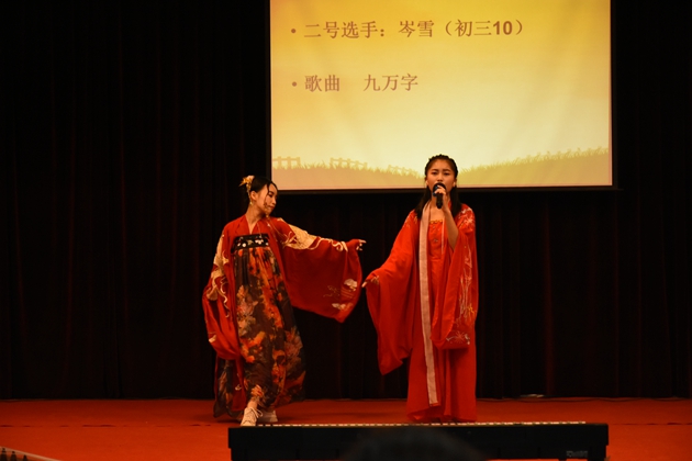 本次比赛共有二十三个参赛节目。一曲《琵琶语》的古筝伴舞拉开了比赛的帷幕,一支爵士舞《Breath》带动了全场的气氛;一首诗朗诵《祖国啊!我亲爱的祖国》点燃了在场观众的爱国情怀;接下来潇洒律动的架子鼓、俏皮可爱的爵士舞、流畅悦耳的钢琴演奏、柔中带刚的拉丁舞、动感十足的街舞等等都赢得同学们的阵阵喝彩声;高一(4)班的陆俊成同学满怀深情的演唱了一首《你还要我怎样》获得了雷鸣般的掌声,并获得了本次比赛的最高分。