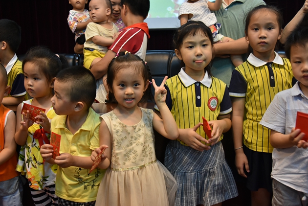 六月是童年的摇篮,是孩子们的节日。在“六一”国际儿童节到来之际,为了促进教职工子女健康成长,培养和增强儿童的家庭观、亲情感,增强儿童节活泼欢快的节日气氛和体现学校对教职工子女的人文关怀。我校工会于6月1日下午5:30在学校报告厅组织开展了教职工子女庆“六一”儿童节活动。报告厅内一片欢声笑语,我校教职工以及他们14岁以下的子女在此欢庆“六一”国际儿童节。黄尚泽董事长发表了热情洋溢的讲话,并祝孩子们节日快乐,健康成长!学校给每个孩子都赠送了礼物和慰问金,送去了浓浓的节日祝福。