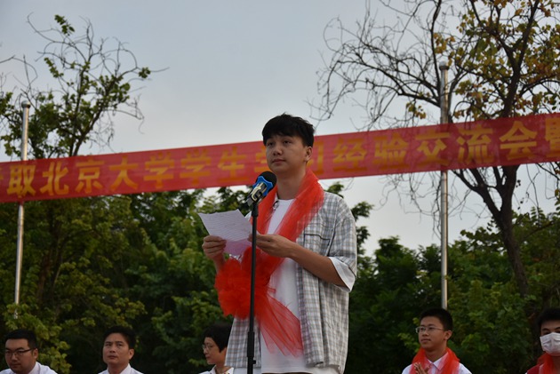 今天,学校在这里举行在2020年高考中,考取北京大学3位学生学习经验交流会暨奖学金颁奖仪式、初一年级入学教育以及军训活动。在这里,我谨代表学校领导,祝贺余东侠、黄宗宇、秦谦信被北京大学录取,实现人生价值追求。今天你们以三中为荣,明天三中以你们为荣。