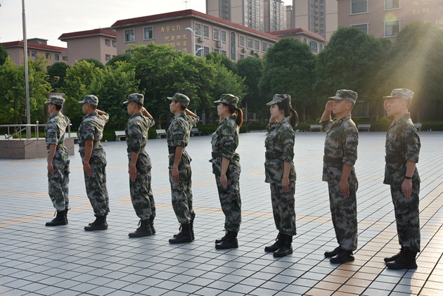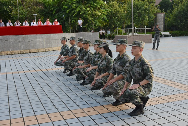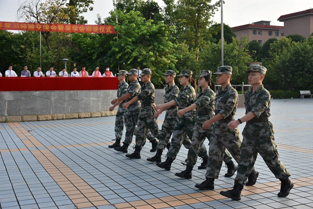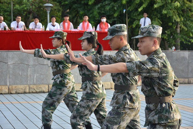 之后,参与本次军训带队的教官们给在场的领导和师生们做了风采展示。他们的步伐整齐划一,他们的声音铿锵有力,不少学生为教官们的精彩展示发出阵阵喝彩。