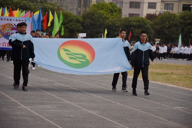 天气虽然寒冷,但全场震耳欲聋的呐喊和欢呼声却将激情点燃。校运动会开幕式最受期待的各班级方阵队入场仪式拉开序幕。一个又一个班级排着整齐的方块队形,整齐划一的向主席台大踏步走来。在班级表演展示环节中,各个班把精心准备的节目展示给全校领导老师和同学们,有热情洋溢的啦啦操,有催人奋进的爱国情景剧、有富有民族风情的舞蹈……节目精彩纷呈,这些表演表达着同学们的团结与友爱,展示出学子们的自信和热情。高三年级最后登场,在《追梦赤子心》的音乐伴奏下,高三年级全体同学喊出了“三中奔腾、所向披靡、全力以赴、三中必胜”的口号,表达了所有人决战高考的决心和信心,深深地感动着在场的每一个人!