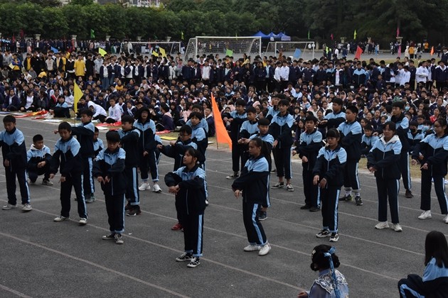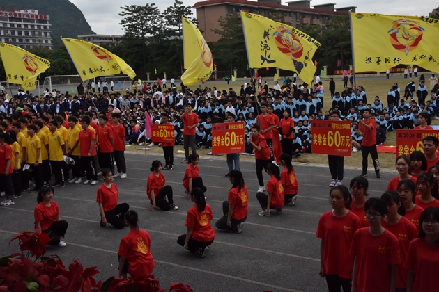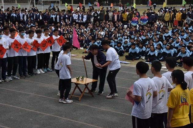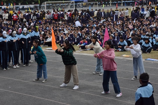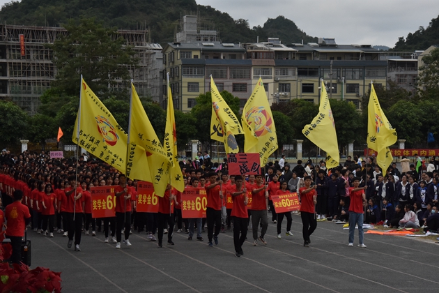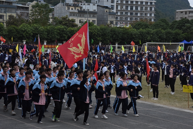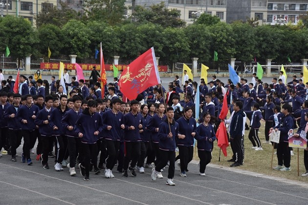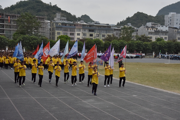 12月3日,在这初冬时节,我校迎来了第十六届校运会。凛冽的寒风挡不住师生们的运动热情。一大早,全校师生就来到了运动场,原本寂静的赛场一下子热闹起来,到处都充斥着招展的彩旗和飞扬的标语。出席开幕式的领导有黄尚泽董事长、杨敏校长、高文广常务副校长、黄春彬副校长、杨琦副校长、黄伟副校长以及各处室的正职领导。