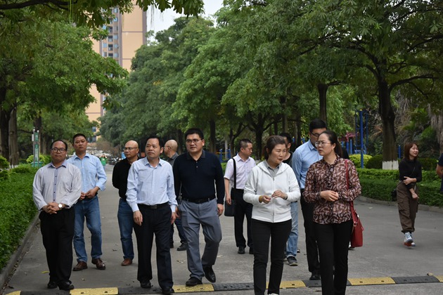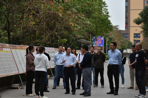 3月18日下午,田阳区教育考察团周武星教育局局长一行在我市教育局赵建灵局长的陪同下到我校参观指导。我校杨敏校长、黄春彬副校长、杨琦副校长以及学校部分中层领导在学校门口迎接各位考察团领导的到来。