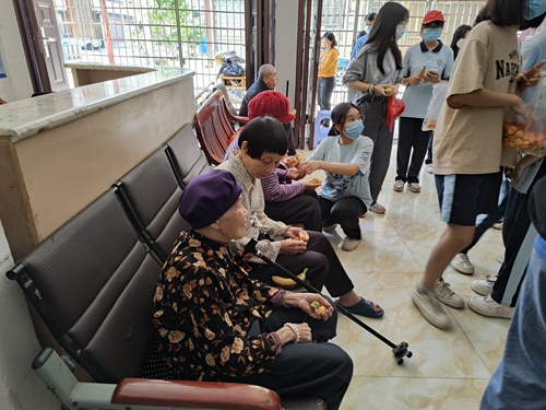 小善蕴真情,众爱彰和谐。志愿者们带来了时令水果、保健食品,让老人们保证充足的营养和水分摄入。长者年迈,同学们亲力亲为,为长辈拍拍背、揉揉肩、捶捶腿,让老人们舒缓疾痛。与此同时,志愿者还将自身的才艺与学识展示出来。无论是和谐动听的歌声,又或是扣人心弦的故事,都让敬老院增添欢乐的气氛。