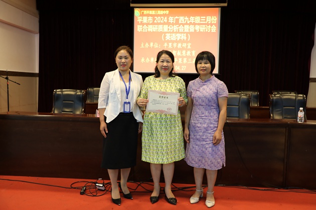 为了进一步探讨我市九年级英语复习教学方法,总结、提炼并推广复习教学经验和做法,统筹安排毕业班教学,平果市2024年广西九年级英语学科三月份联合调研质量分析会暨备考研讨会于4月27日下午在平果三中隆重举行。平果市英语学科中心组成员、全市毕业班英语老师及部分兄弟县、市的英语老师参加本次研讨会。