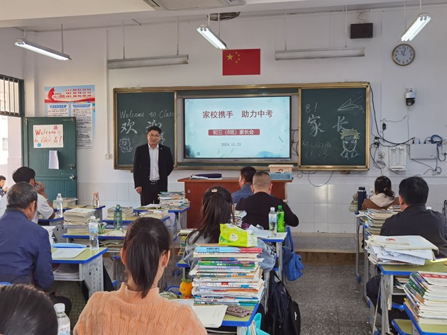 随后,教师代表龙法婵老师强调了初三阶段知识的综合性与难度提升,鼓励家长关注孩子的学习心态。希望家长能多与孩子沟通,了解他们在学习和生活中的压力,做孩子心灵的港湾。
