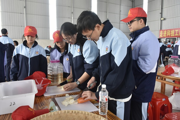 评委们从菜品的色泽、口感、创意等多方面进行严格评审。同学们则在一旁认真观摩,交流烹饪心得。整个比赛过程不仅展现了同学们的厨艺天赋,更培养了他们的团队协作能力与创新思维,让大家在美食的世界里收获成长与快乐,为研学之旅增添了一抹独特而难忘的色彩。