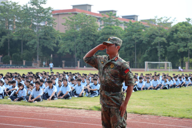 谢炬燊副校长代表学校发表了热情洋溢的总结讲话。他首先向顺利完成军训任务的全体同学表示热烈祝贺,向辛勤付出的教官、班主任致以衷心感谢。谢副校长讲话中充分肯定了同学们的训练成果和顽强意志,并提出三点要求,“一是站直了,别趴下;二是简单事情极致化;三是全面提升个人素养,树立“人人都是人才,人人都可以成才”的信念”,鼓励大家把在军训中养成的好作风、好习惯带到今后的学习生活中,砥砺品格,成长成才,努力成为有理想、敢担当、能吃苦、肯奋斗的新时代好青年。