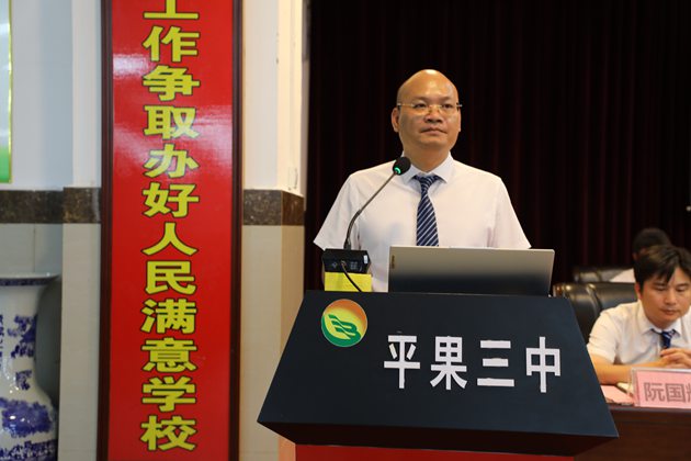 教育是一场温暖的坚持,育人是一次共同的成长。在这个充满希望的新学期伊始,平果三中全体教师开启了一场有深度、有温度、有力度的开学全员育人新篇章。谢炬燊副校长从心理、品德、生涯规划等方面解读了我校“五育融合,全员育人”的新方案。强调从“班主任单兵作战”转向“全员协同共生”,重构师生、家校、社校、生生四大关系,明确“人人都是德育工作者”定位。
