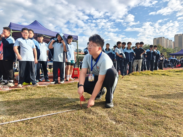 为保障赛事高效、有序进行,本次校运会共组建了检录组、计时组、记录组、项目专项裁判组等多个团队,覆盖田径、实心球、跳远等全部比赛项目。