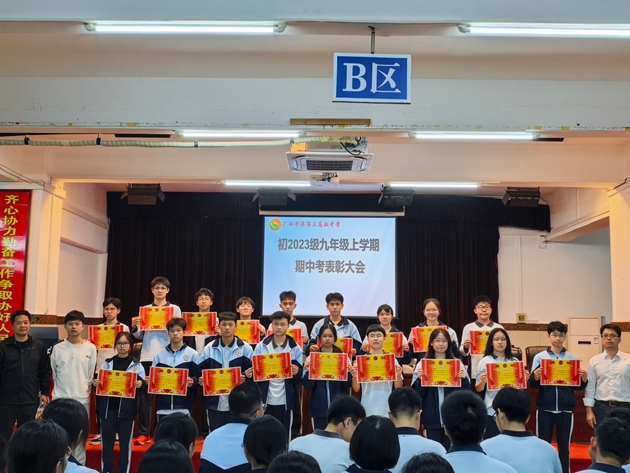 鲜花怒马少年志,星光点点璀璨时。为了鼓舞斗志,坚定信心,11月26日晚,平果三中初2023级对本次期中考试成绩优异和进步的学生进行了表彰,会议由年级副组长梁海玉主持。