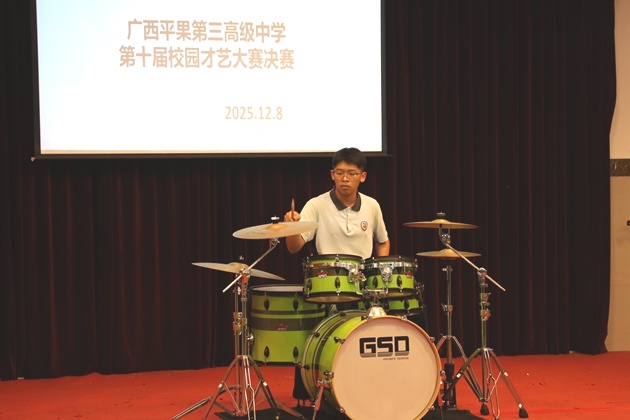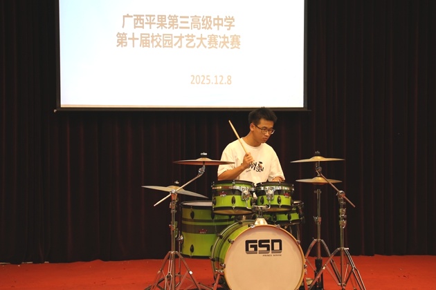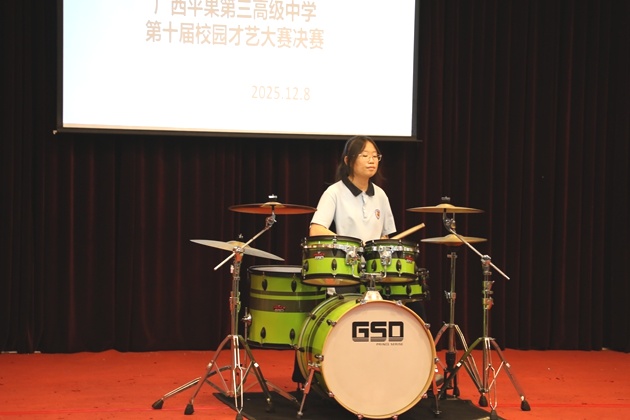 器乐专场精彩纷呈,架子鼓的激昂铿锵,从初中部到高中部,同学们以娴熟技艺驾驭着乐器,指尖捏紧鼓棒目光锁定鼓组这一刻不用迎合谁的节奏只需要跟着心跳敲出属于自己的“人生BGM”。